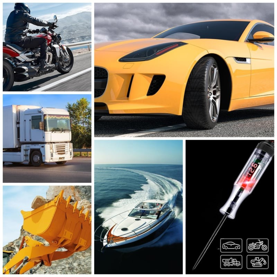 Električni tester ima prošireni raspon mjerenja od 5 V do 90 V. Brzo provjerava napon akumulatora i pomaže u dijagnostici kvarova, uključujući i funkciju testera alternatora za sustave punjenja na automobilima, kamionima, SUV-ovima i plovilima. Idealan je i za provjeru ispravnosti električnih krugova prednjih i stražnjih svjetala, osigurača, spojeva i mnogih drugih komponenti.
